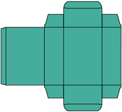 ECMA A20.20.03.03 – tai kartoninės dėžutės konstrukcija su įkišamais viršutiniais ir apatiniais dangteliais bei šoniniais atvartais, kaip ir modelyje ECMA A20.20.03.01. Tačiau, priešingai nei pastarajame, abu dangteliai yra toje pačioje sienelės pusėje. Tai estetiškesnė pakuotės konstrukcija, nes uždarymo linijos priekinėje dėžutės pusėje lieka mažiau matomos. Šis modelis puikiai tinka kosmetikos, farmacijos produktų ar interjero aksesuarų pakavimui.